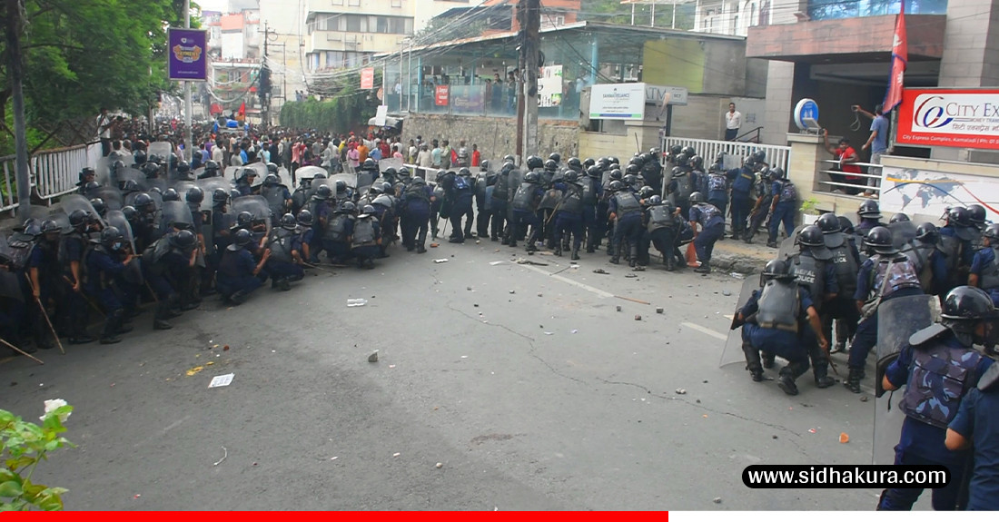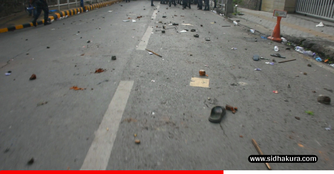 काठमाडौँ महानगरको डोजर आतंक बन्द गर भन्दै काठमाडौं प्लाजा कमलादीस्थित महानगरपालीका घेराउन गर्न खोज्दा प्रहरीले रोकेको थियो । सो क्रममा प्रहरी र व्यवसायीबीच झडप भएको हो । महानगरपालीका घेराउ गर्न प्रहरी रोकेपछि प्रदर्शनकारीले ढुङ्गा प्रहार गरेका थिए ।