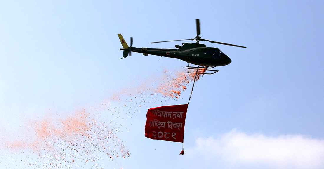 टुँडिखेलमा संविधान दिवसः नेपाली सेनाको हेलिकप्टरमार्फत पुष्पवृष्टि